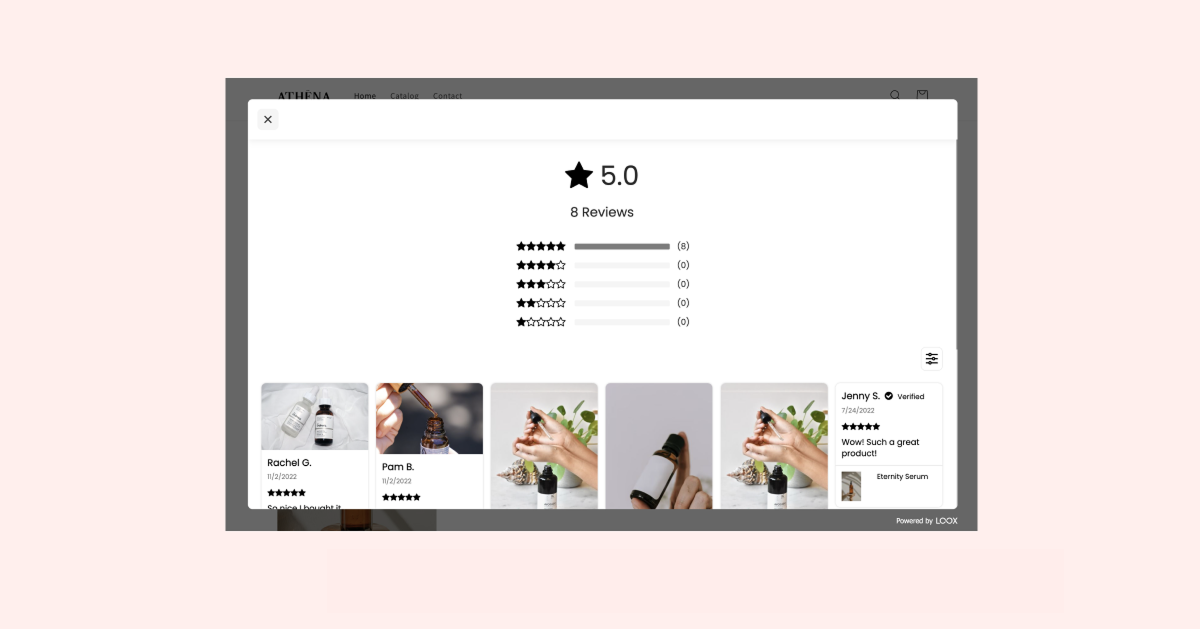 Display your store’s reviews on a floating display, allowing your customers to see your reviews without interrupting their buying journey using the Floating Reviews Widget.
