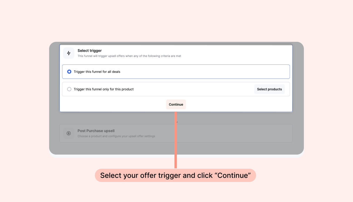 Note: By default, we will promote the selected product on all orders completed in your store, regardless of whether the customer bought the product in their initial order.