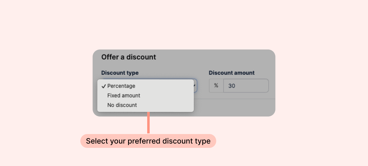 2. Open the “Discount type” dropdown menu, and select a discount type.
