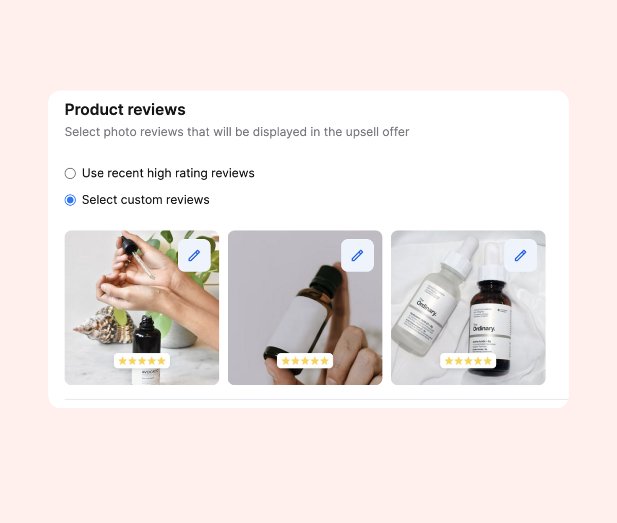 Select up to 3 reviews you would like to display on your upsell offer.