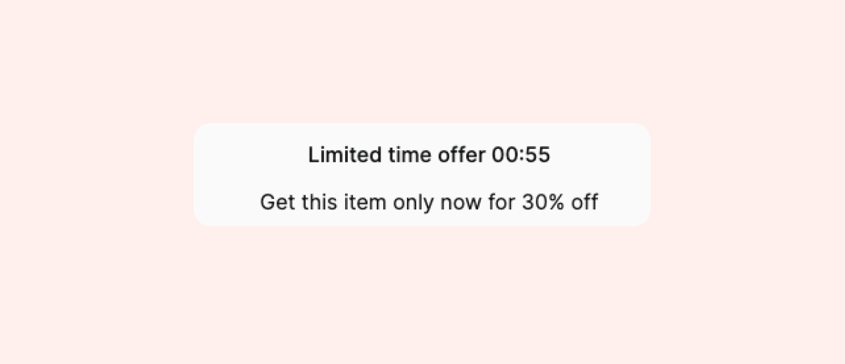 Add a countdown timer to your upsell page to create a sense of urgency on the deal and urge your customers to complete their purchase within a defined time frame: