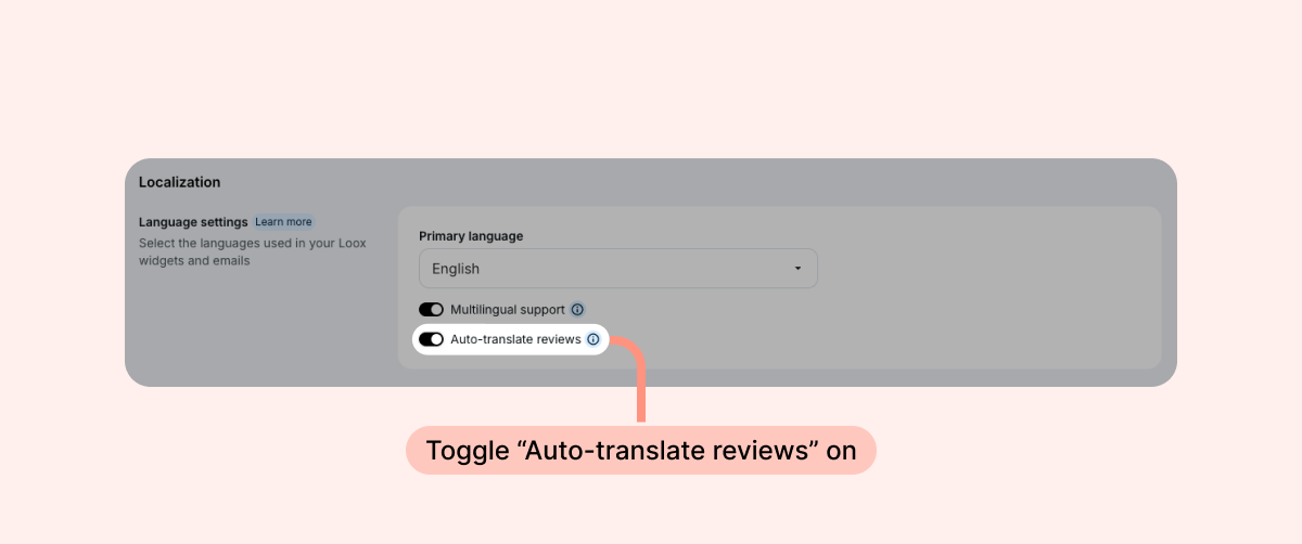 - When enabled, Loox automatically translates reviews into your primary language across Loox widgets on your store