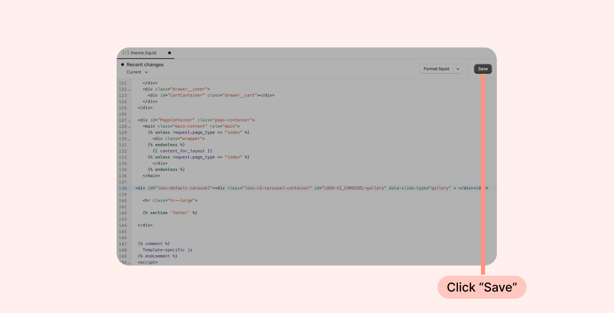 - Open the template or section you use for your homepage (Usually called theme.liquid).