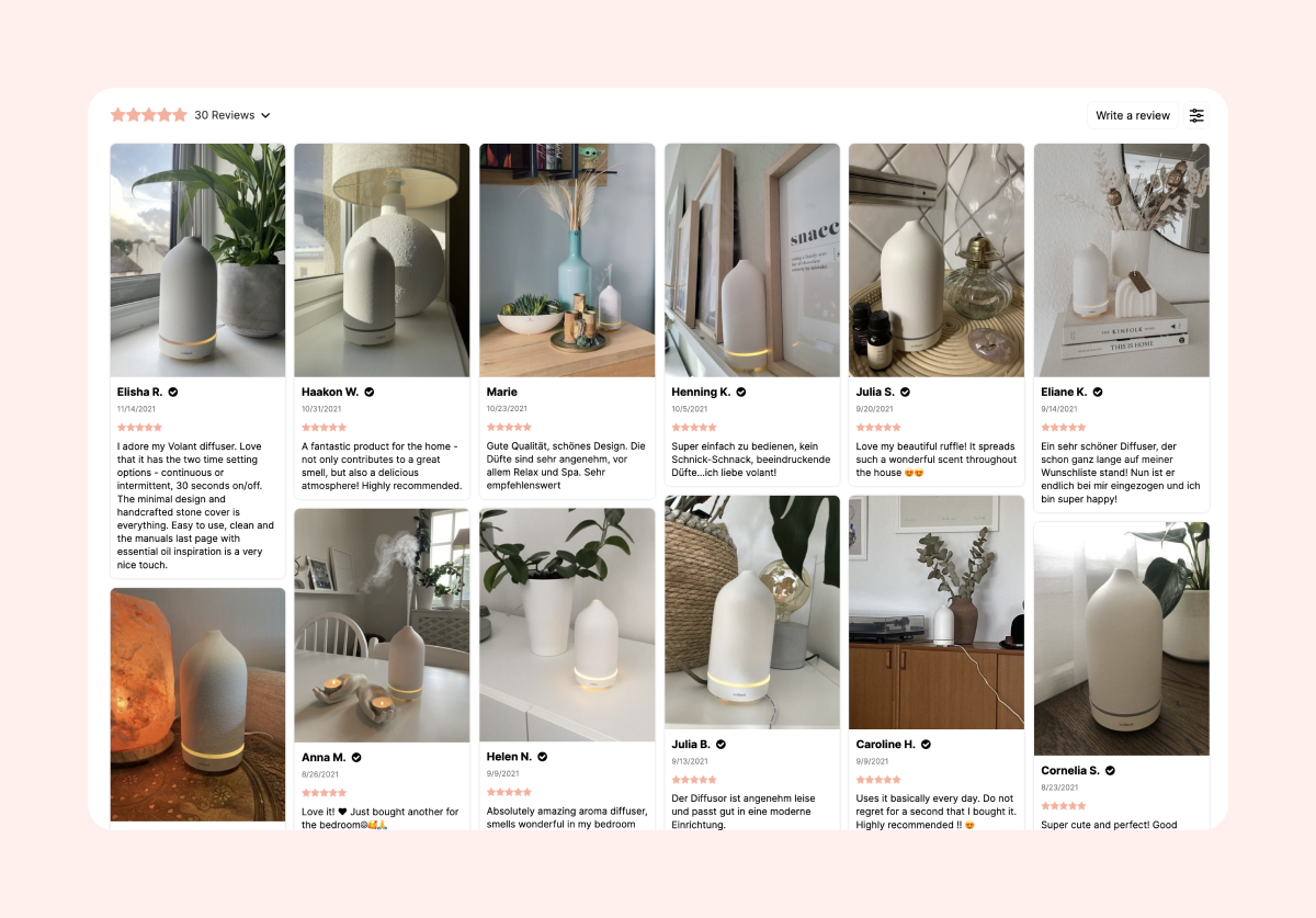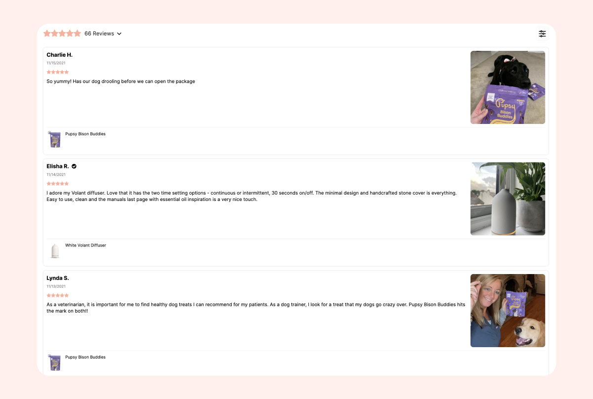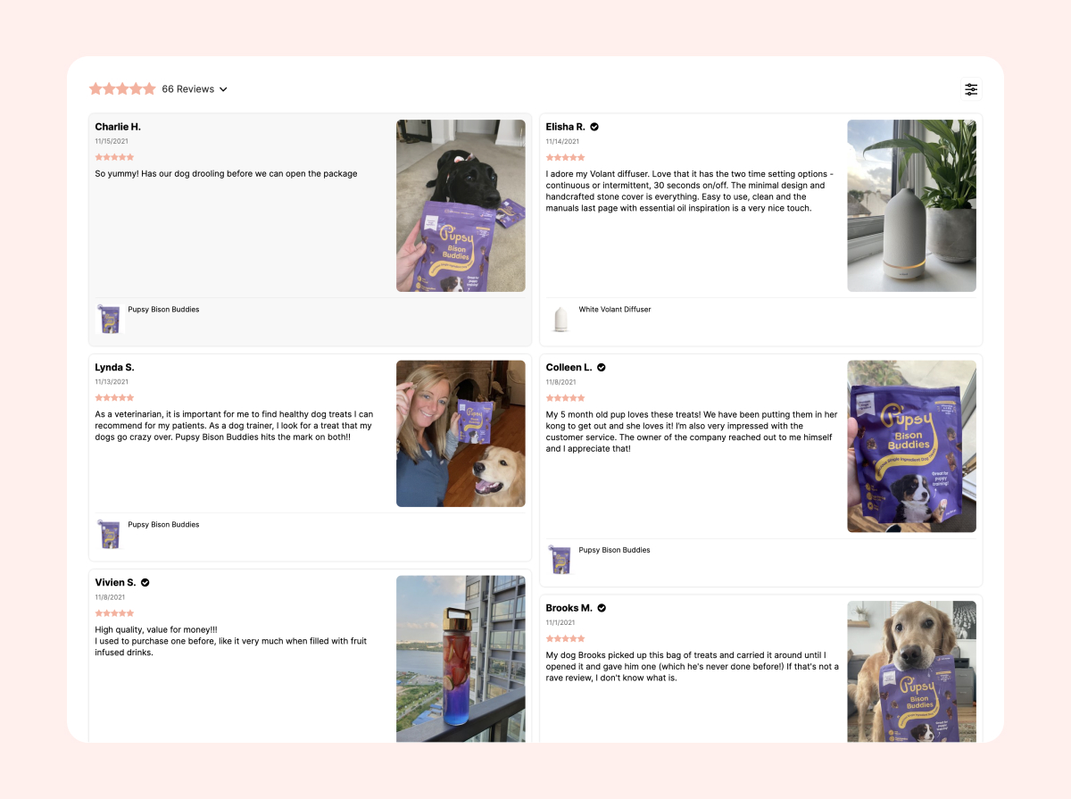 - Customize your Reviews Widget's layout, colors, text, and preferences, ensuring it seamlessly fits your brand and highlights happy customers' reviews throughout your buyers' journeys.