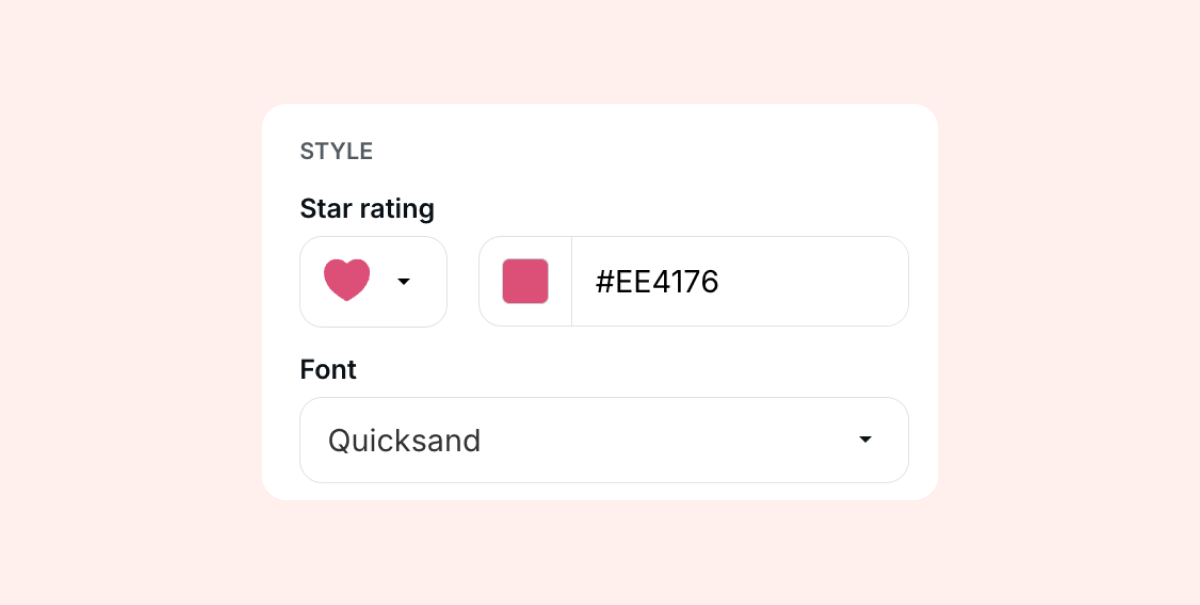 On the "Style" menu, you can select your star rating icon and font for the Reviews Widget.