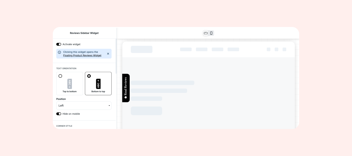 Note: When opening the Sidebar Widget while viewing a product page, the Floating Product Reviews Widget will only display reviews relevant to that specific product. When on the homepage, it will display all your store's reviews.
