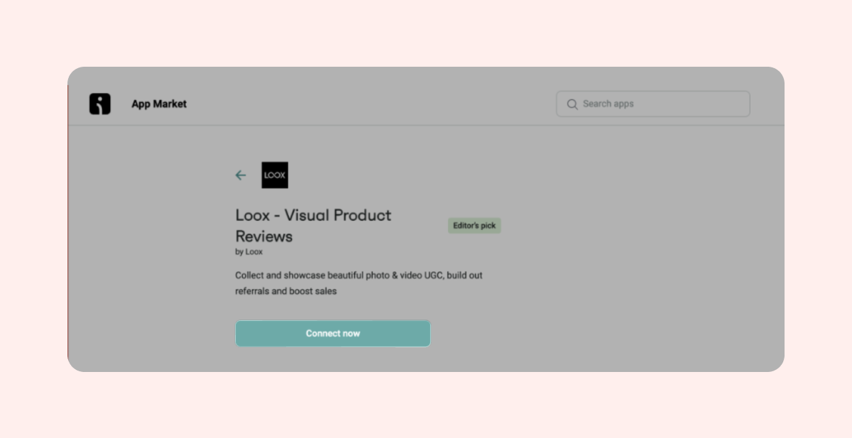 - Under "Apps", search for "Loox - Visual Product Reviews".