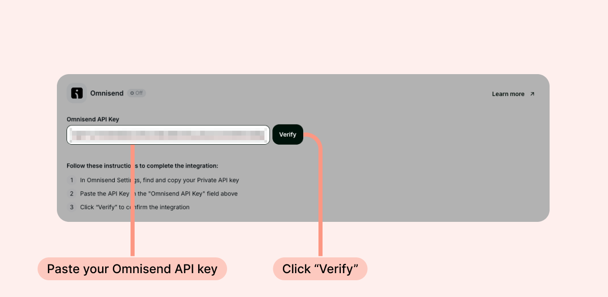 - Paste your Omnisend API key and click "Verify".