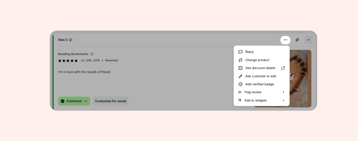 A: If a review is related to a different product than the one that was originally reviewed, you can reassign the review to the correct product directly from your Loox admin. Learn more.