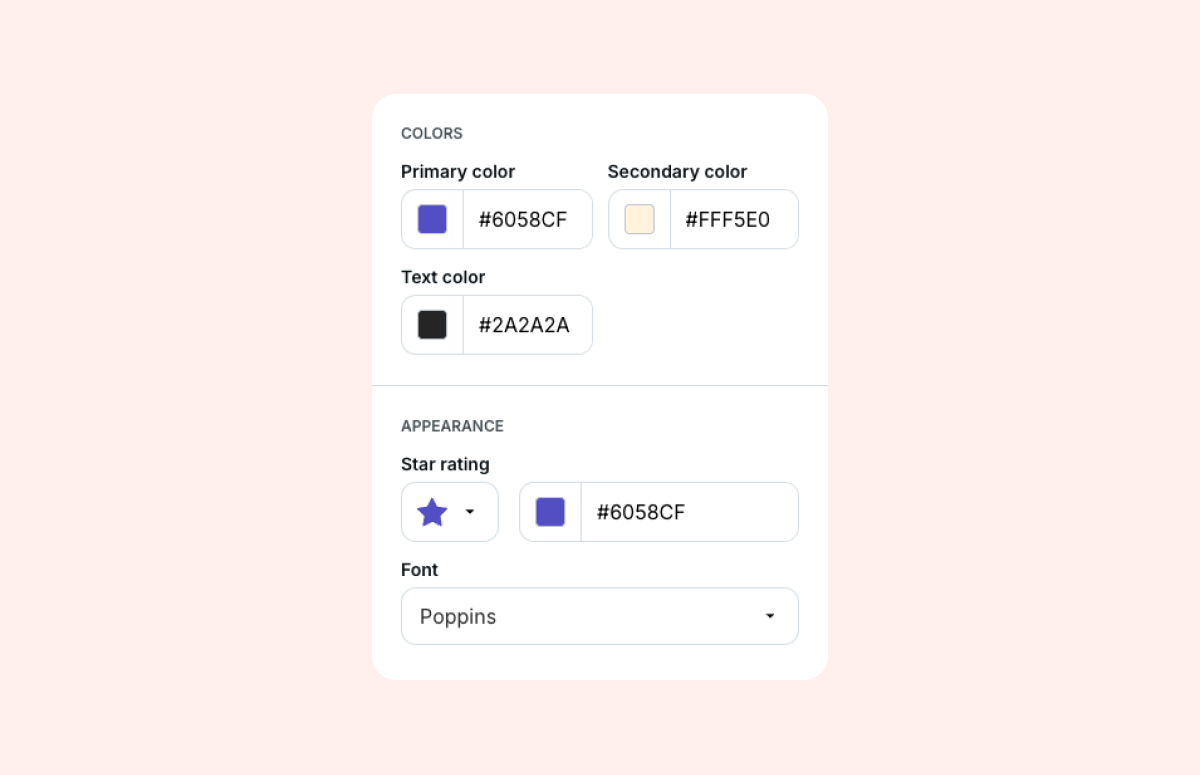 Inside the Loox Studio editor, you can select from multiple template styles, and customize the design to match your brand. You can control the colors, font, and rating icon.