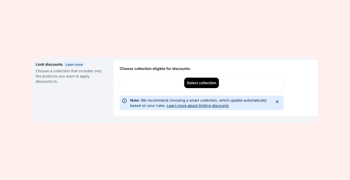- Select the collection you want to limit the discount to. Currently, only one collection can be selected.
